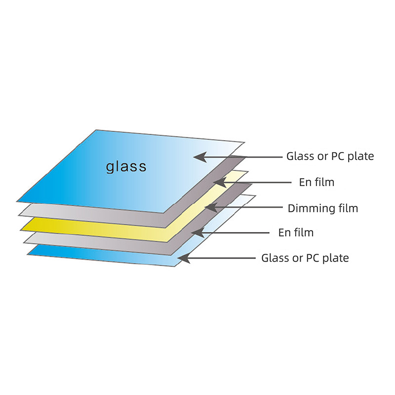 調光フィルムは接着剤の層にしてガラスに直接貼り付けることも、積層プロセスを使用して 2 層のガラスの間に挟むこともできます (つまり、調光ガラス)。調光フィルムに印加される電圧により、スマート フィルムが透明または曇って見えるため、ガラスの透過とプライバシーに対する人々の二重の要件を満たします。不透明であっても照明は良好であり、これは現在のカーテンでは実現できないことです。